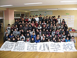 6年間お世話になった学校への感謝の気持ちを形に残そうと卒業事業係が企画。この日は看板の原案を製作しました。以前授業で生徒たちが自分の名前の一字を手彫りしたハンコを利用して、判を押し並べて『菊陽西小学校』の6文字を作り上げました。生徒たちは自分たちの手作りしたものが卒業後も校門横の掲げられると知り、丁寧に心をこめて押していました。