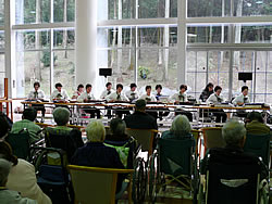 演奏や踊りを楽しまれたサンライズヒル利用者の方は「良かったです。もっと演奏を聞きたかったです」と喜ばれました。演奏を披露した舟津博子さんは「みなさんが曲に合わせて歌ったり、笑顔で聞いて頂き嬉しく思いました」と話されました。 |