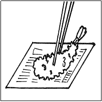 弁当を新聞で包むと漏れ汁を 吸い取ってくれる。 |