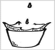 雨漏り受けのバケツなどに新聞を 広げておくと水が飛び散らない。 |
