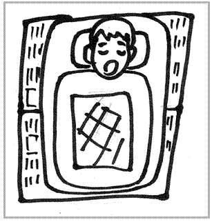 夜尿症対策として、シーツの下に 新聞を敷いて吸取らせる。 |