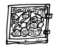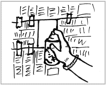 ペンキスプレーを使う時、塗装の 境目に新聞を貼る。 |