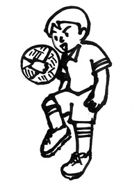新聞紙をサッカーボール程度に 丸め、ガムテープで巻き室内練習用に。 |