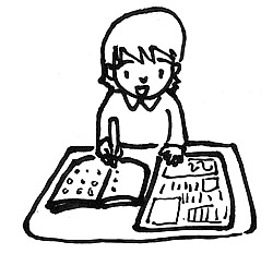 裸眼で新聞を読む訓練をして、 目の老化を防ぐ。 |
