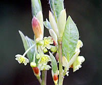 落葉低木、葉枝と根に芳香があり、葉は枝の上部に互生し、4月に淡黄緑色の花を新葉と共に春に咲かせます。雌雄異株。