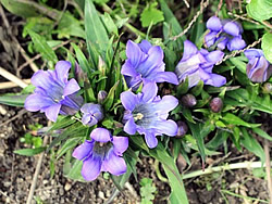 リンドウは、薬用で根を竜胆(りゅうたん)といい、苦味健胃、消炎、鎮静薬として、漢方薬では疎経活血湯、竜胆瀉肝湯などに配合されます。苦味配糖体(イリドイド配糖体)のgentiopicroside(=gentiopicrin)等を含みます。民間薬では食欲不振の時にセンブリ、リンドウの根等を用い、大変苦いので唾液と胃液が沢山分泌され、胃の働きを良くし消化を助けます。