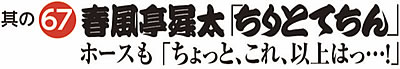 春風亭昇太は新作を得意としていますが、子供の頃の話がよく出てくるまくらが、実は一番おもしろい。昭和34年生まれで私と歳も近くてアルアルが多く、今回の「ちりとてちん」も、私は別名『ウチに洗濯機が来た日」と勝手に呼んでいます。他の演題でも「小学校にテレビが来た日」「駿河湾で遭難しそうになったこと」などのエピソードが語られて楽しめます。若そうに見えますが、立川志の輔と同期、しかも何ヶ月か先輩(年齢は6つ下)です。