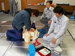 AEDがあるのは分かっていても使い方に不安がありましたが今回私も一緒に勉強させていただき本当にためになりました。(岩田) |