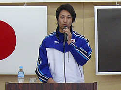 続いて、菊陽町体育協会研修会も行われ、シドニーオリンピックテコンドー日本代表の樋口清輝さん(熊本県阿蘇市出身)による「一歩前に出る勇気」と題した記念講演が行われました。