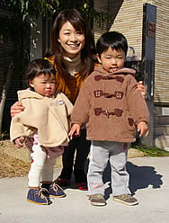 参加した永野正恵さん(新山区)と3歳の光輝くんは「子どもが消防車を見ることを楽しみにしてきました」と笑顔で写真を撮っていました。 |
