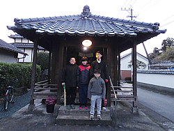 もぐらうちは午後5時半、子どもたちが区の地蔵堂前に集まり、各家庭を回り「十三日のもぐらうちは田畑行け」と掛け声をかけながら、もぐらうちで地面を力いっぱい叩きました。 |
